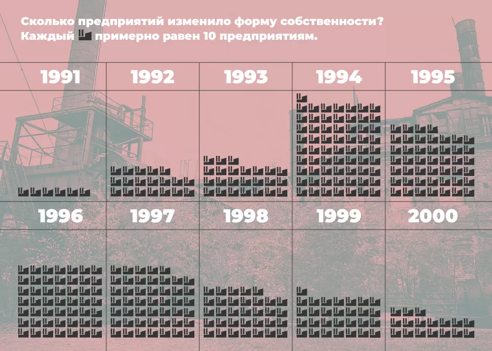 Когда Беларусь получила экономическую независимость, приватизация началась с чистого листа. Раньше она проходила стихийно и в частном порядке. До 1992 года предприятия приватизировали на основе постановлений правительства и временных нормативных актов, а закон о процессе приватизации ещё не издали13Эволюция белорусской модели приватизации: предпосылки, концепции, результаты. С. 8..