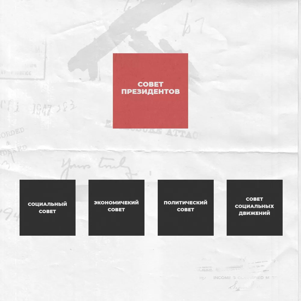 Помимо указанных выше советов, существует Совет социальных движений, в который входят лидеры общественных организаций, этнических, демографических, территориальных и профессиональных групп (например, Движение безземельных сельских трудящихся (Movimiento de los Trabajadores Rurales Sin Tierra, MST)7Puent- Vázquez U. (2014) Los movimientos sociales globales en América Latina y Caribe. El caso del consejo de movimientos sociales del ALBA-TCP // Cuadernos de Trabajo. №. 63.. Его задача — организовать связи между центральными органами власти и гражданским обществом.