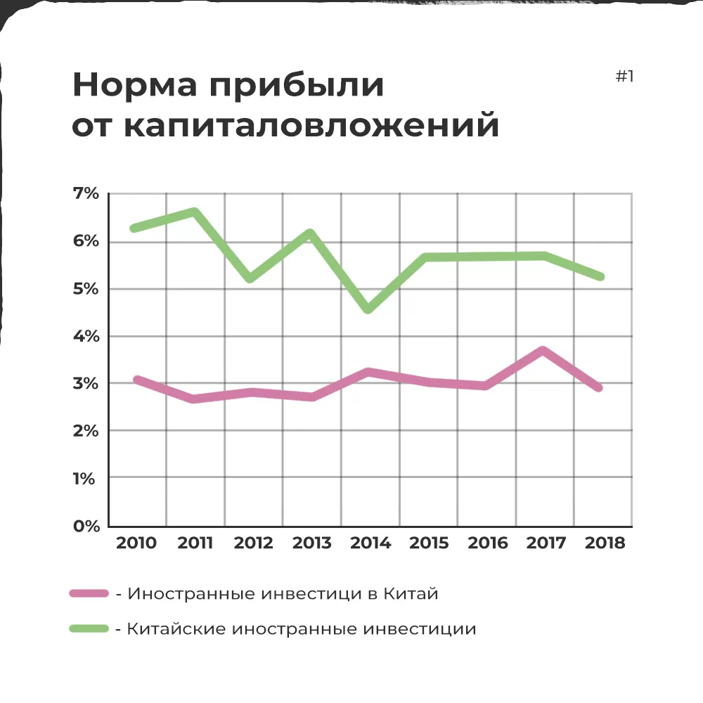 В 2010-2018 годах нормы прибыли на китайские иностранные активы составляли в среднем около 3 % [Прим ред.: Данные цифры не совсем корректны для оценки извлекаемой прибыли. Нужно оценивать прибыльность именно ПИИ, а не всех иностранных активов. Сам же автор ранее в статье указывает, что из всех иностранных активов Китая на прямые инвестиции приходится 26 %. Именно их нужно было проанализировать. За счёт того, что в структуре активов КНР прямые инвестиции занимают меньшую долю, средняя доходность всех её активов становится ниже]. Нормы прибыли на иностранные инвестиции в Китай колебались, в основном, в диапазоне 5-6 %. Очевидно, что среднюю норму прибыли на китайские иностранные вложения размером около 3 % сложно назвать «сверхприбылью». Более того, иностранные капиталисты в Китае способны извлекать выгоду примерно в два раза бо́льшую, нежели китайский капитал может извлечь из аналогичного объёма вложений в других странах мира [Прим. ред.: Ли Миньци сравнивает доходность не на ПИИ, а на все зарубежные активы. Он не учитывает, что в структуре активов Китая ПИИ занимают меньше, чем у стран-инвесторов в китайскую экономику].