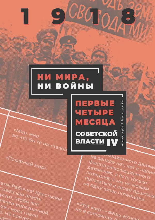 Они тянули время, ожидая, когда грянет гром — всемирное пролетарское восстание. На практике всё оказалось суровей: Четверной союз огрызался, выдвигая ультиматумы, а пороховая бочка не взрывалась. Нужно было что-то делать. Тогда видные партийцы, отстаивая ту же стратегию на мировую революцию, начали спорить о тактике — как отбиться от вражеского натиска, сохранить Советскую Россию и при этом поднять на восстание мировой пролетариат. Как всегда, мнения коммунистов разнились.