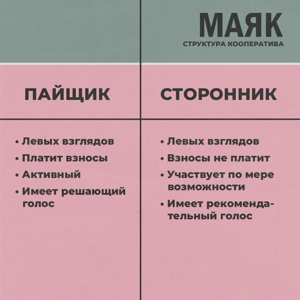 Читай в интервью, чем помогают кооперативы, когда политика запрещена, а люди — в спячке. Ещё мы дали новые советы кооператорам, опираясь на опыт «Маяка».