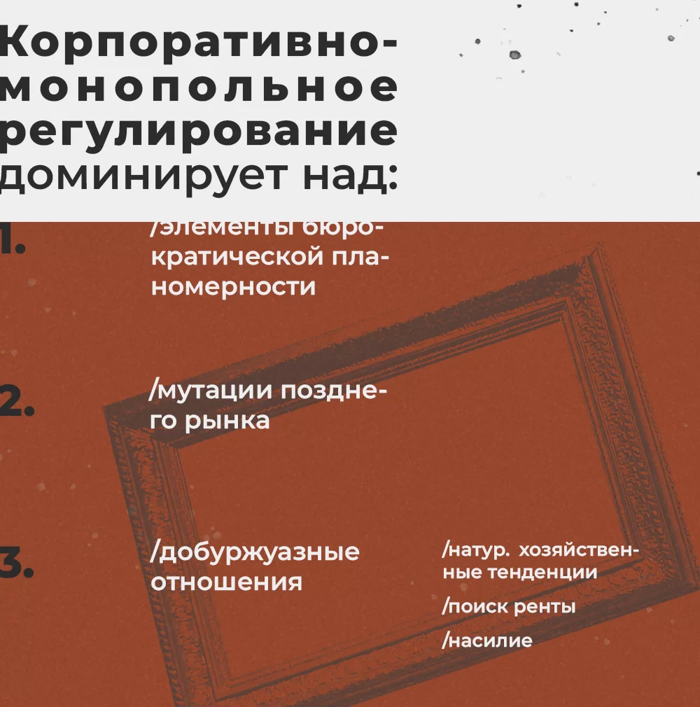Отдельный вопрос — как обозначить вмешательство государства в экономику в том виде, в котором мы его описали выше, в разделах о «ренте» и собственности.