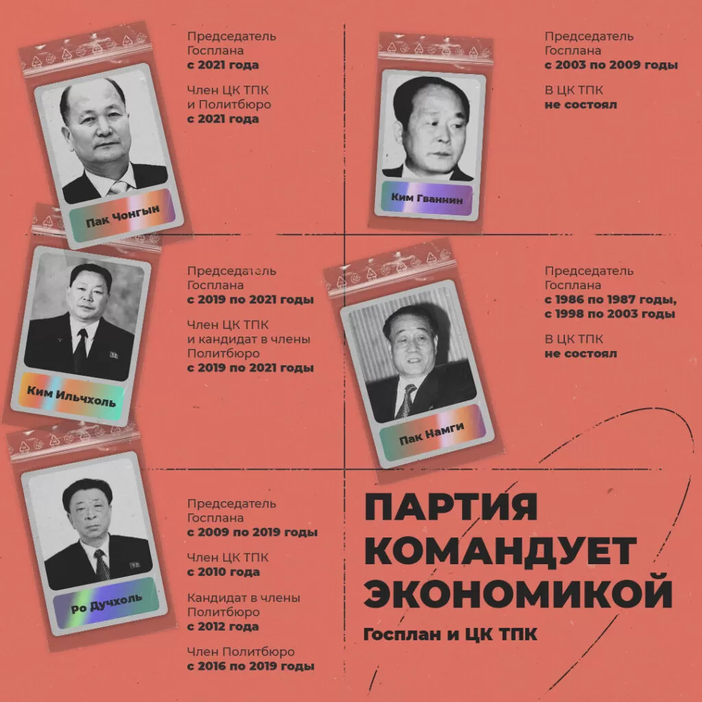 В 2021 году в речи на открытии VIII съезда ТПК Ким Ченын13Речь Ким Ченына при открытии VIII съезда // Корея — № 1 (№ 778) (специальный номер). — Январь, 110 год чучхе (2021). — Стр. 4–5. рассказал, что, готовясь к съезду, власть проанализировала реальное положение дел на местах и то, как выполняются принятые решения14Подробнее об этом мы писали в статье «К нам едет ревизор» // spichka: https://spichka.media/8-congress-labor-party/. Для этого ЦК ТПК создал непостоянную центральную контрольную комиссию. Члены комиссии инспектировали работу предприятий, а затем — министерств. Мы не знаем, что стало с этой комиссией после съезда. Судя по названию, она должна была прекратить свою работу. Но вместо неё могли создать новый орган, который выступил бы аналогом института уполномоченных Госплана в СССР.