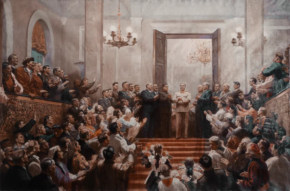«Великому Сталину слава!» (1950), худ. Ю. Кугач, В. Нечитайло, В. Цыплаков, Русский музей