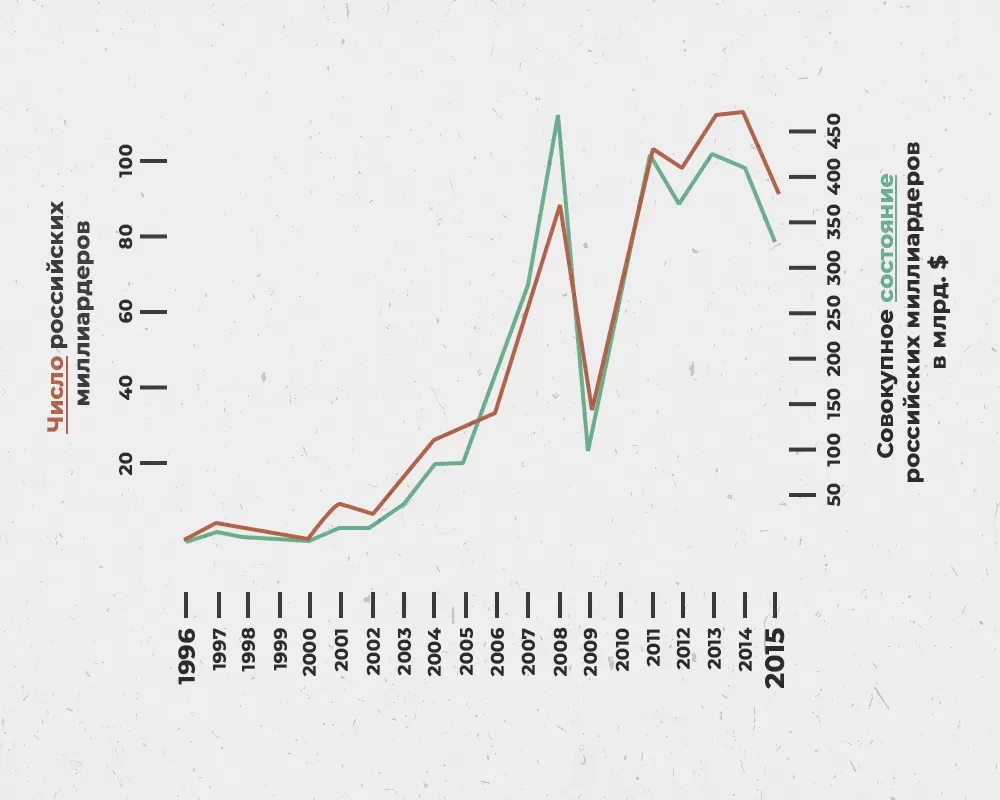 Тем не менее сам факт стремительного роста числа российских миллиардеров и их совокупного состояния указывает на благоприятную для крупного бизнеса политическую и институциональную среду, сложившуюся в путинской России. Кроме того, анализ индивидуальных корпоративных траекторий говорит о способности крупных собственников вести успешную лоббистскую деятельность, формула которой заключается не столько в подчинении государственным интересам, сколько в приватизации прибылей и обобществлении издержек8Гельман В. (2015) Модернизация, институты и «порочный круг» постсоветского неопатримониализма. СПб.: Европейский университет в Санкт-Петербурге.. Наконец, крупный бизнес демонстрирует способность к коллективной мобилизации: ему удается добиваться от государства уступок, задерживать принятие невыгодных для него законов или даже полностью блокировать их.