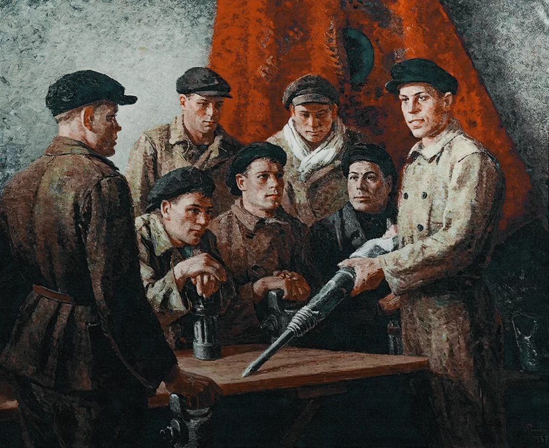 Ещё рекомендую посмотреть лекцию про соцреализм от искусствоведа Светланы Ершовой. Видимо, отсюда докладчик Dharma 1937 взял подборку картин: Лекция «Социалистический реализм» // Виртуальный русский музей, 09.10.2018: https://www.youtube.com/live/Jf9V_PW1MMM?si=K9tzDtthGaRaRrbf Но если художник хотел показать «правдивых» шахтёров, зачем он разместил их в неестественном пространстве?