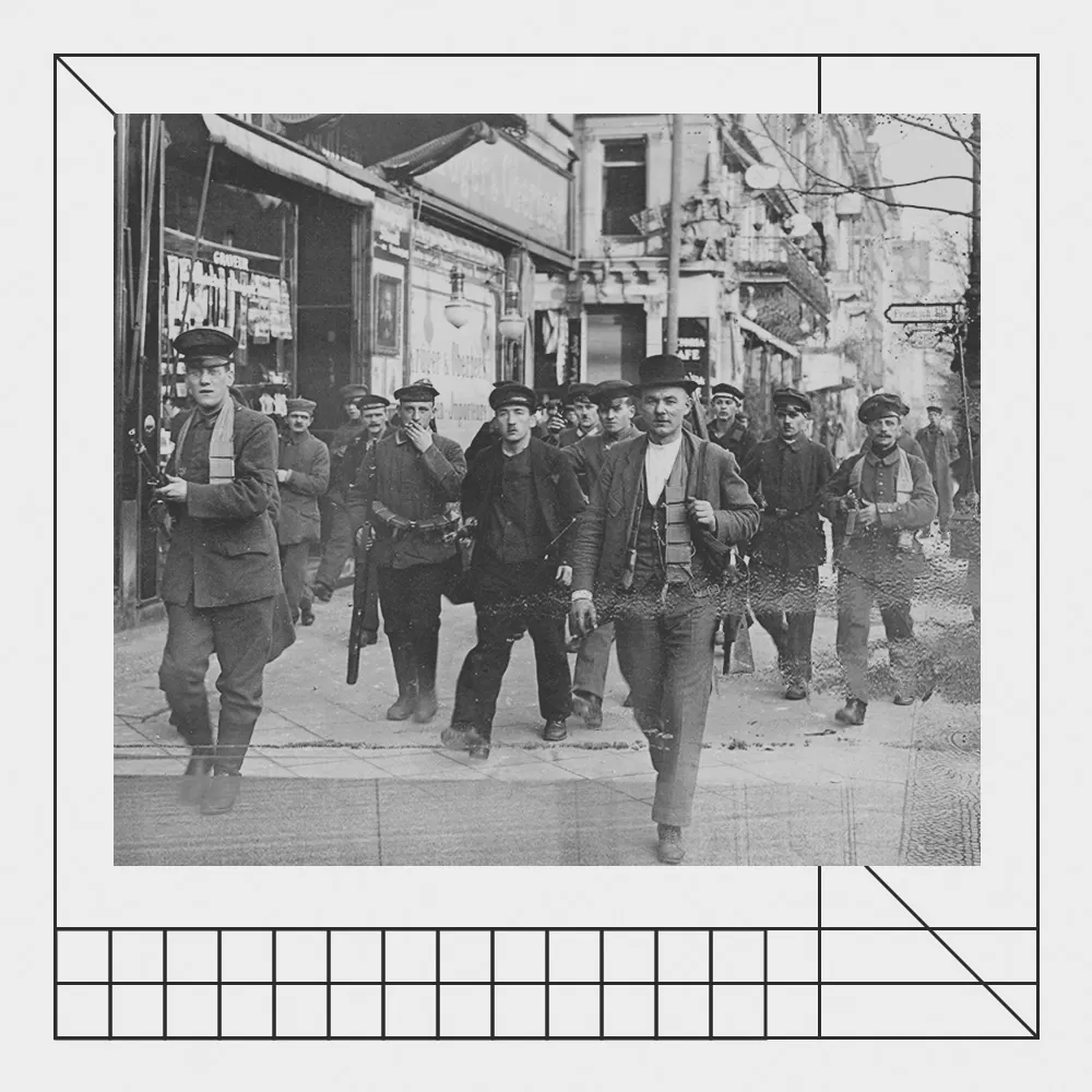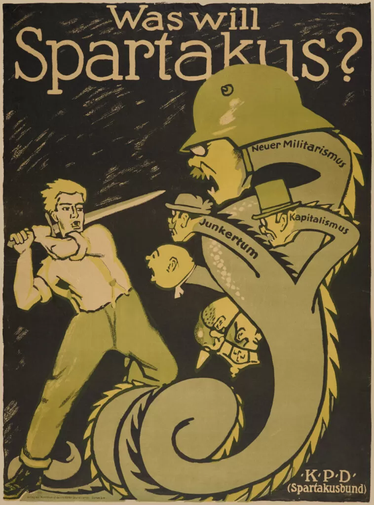 В этой революционной послевоенной атмосфере на рубеже 1918-19 годов родилась Коммунистическая партия Германии (КПГ). С 30 декабря 1918 года по 1 января 1919 года в Берлине состоялась учредительная партийная конференция КПГ. Участники учредительной конференции заявили о своей поддержке диктатуры пролетариата по советско-русскому образцу. Они были полны решимости продолжить начавшуюся 9 ноября 1918 года революцию в немецком государстве с целью построения социалистической Германии. Основанию партии предшествовал фундаментальный спор в рамках социал-демократии Германии. Социал-демократические партии объединились под межнациональным руководящим органом во втором Интернационале, который распался в ходе войны. Однако левое меньшинство социал-демократов обвинило своё руководство в том, что оно не предотвратило начало Первой мировой войны в 1914 году с помощью единой политики для всех рабочих движений в воюющих странах. В результате этих внутрипартийных разногласий в 1917 году Союз Спартака под руководством Розы Люксембург и Карла Либкнехта и Независимая социал-демократическая партия Германии (НСДПГ) отделились от социал-демократов. Как и большевистское крыло российской социал-демократии во главе с Лениным, Союз Спартака призвал к новому, централизованному Интернационалу. Это должно было помочь освободиться от «предательских социал-шовинистов», как того требовал Ленин в «Апрельских тезисах» 1917 года5V. I. Lenin, Ausgewählte Werke, Band II, Berlin 1954, S. 10.
