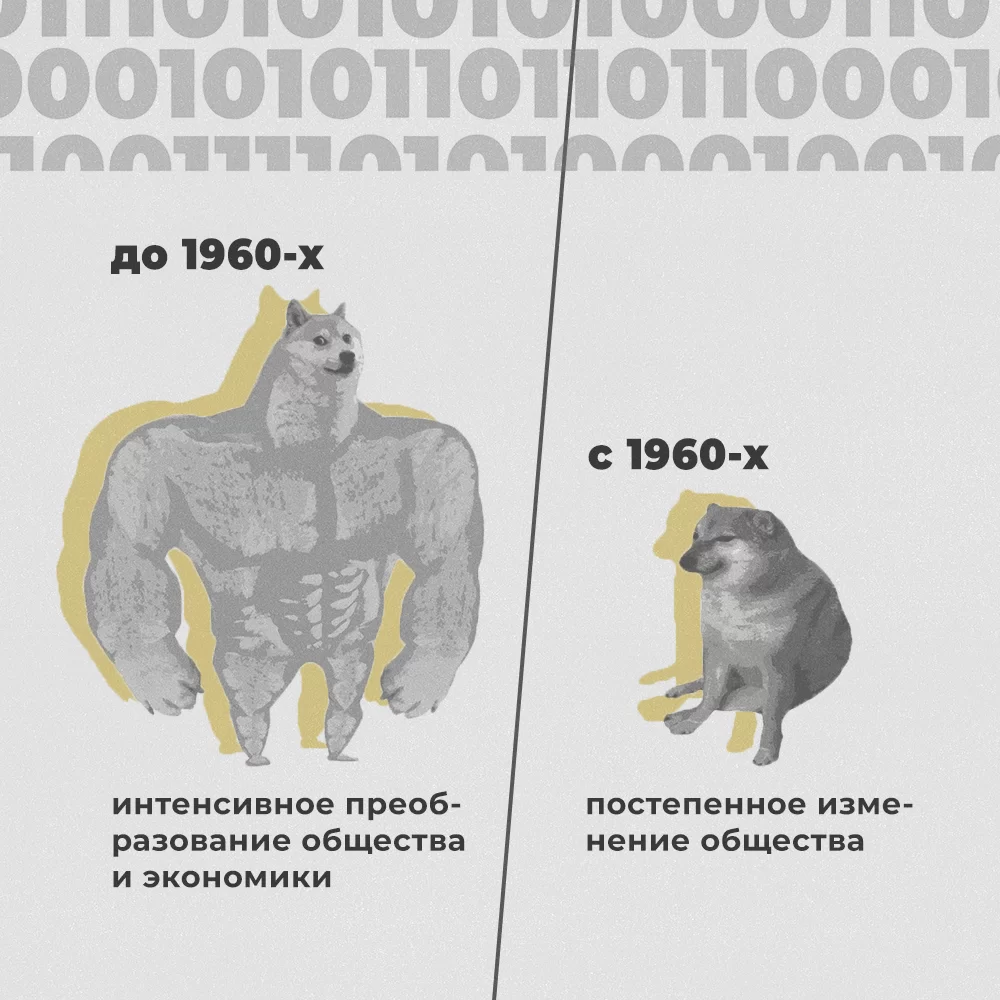 Уже в дальнейшем, в 1980-е годы, советским учёным стало ясно, что научно-технические революции возникают периодически.39Советские учёные и марксисты признали полноценную концепцию промышленных революций лишь в 1980-х годах, а до этого, скорее, отрицали общие связи между научно-техническими революциями. 40Маслов Г. А. Научно-технический прогресс и советская экономическая мысль 1930-х годов // Вопросы политической экономии. — 2024. — № 4. — С. 95–115. Например, они происходили в начале ХХ века, электрификация и индустриализация, и в 1970-е годы — компьютеризация.