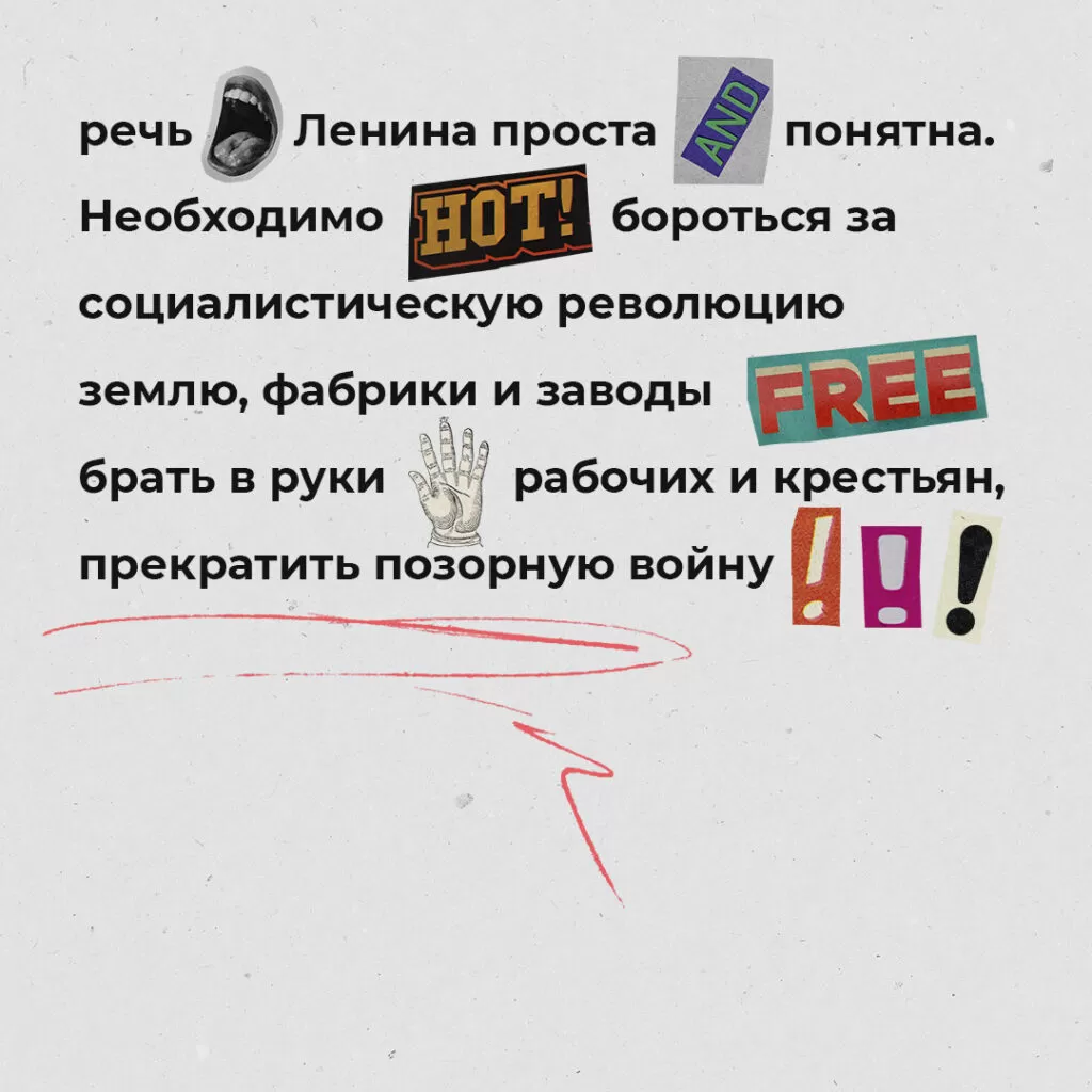 Словом, большевики победили потому, что смогли выразить интересы рабочих в своей теории — а рабочие, осознав её и пойдя за большевиками, привели их к власти.