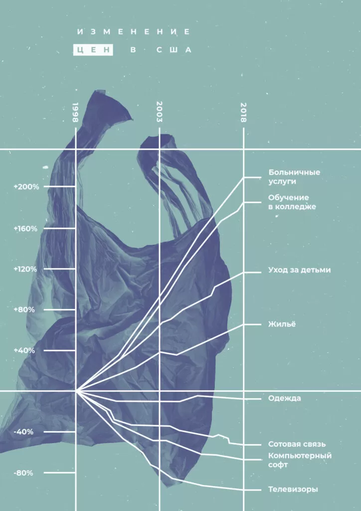 Подтверждением возросшего потребления служат данные, приведённые в книге Жана Бодрийяра «Общество потребления», где чётко показано, как возрастал уровень потребления в США и странах Западной Европы во второй половине XX века18Ж. Бодрияйр. Общество потребления. Советуем также ознакомиться с его книгой, где он представляет свою версию того, почему в обществе царит культ потребления, рассматривая социальные и культурные аспекты вопроса..