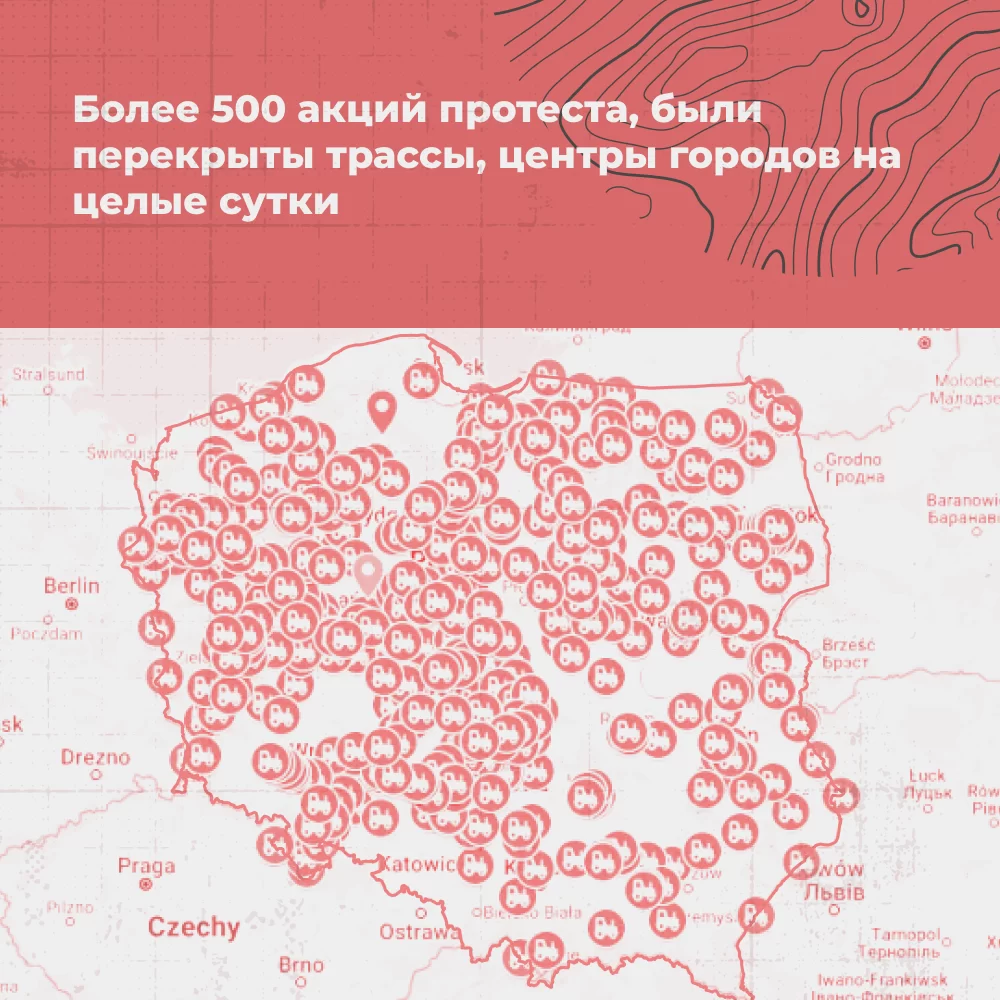 В январе 2024 года Польша бастовала. Были перекрыты границы России, Украины, Беларуси и Литвы. Тракторы польских фермеров выстраивались в многокилометровые колонны на трассах по всей стране. Польша стояла в пробках. 560 населённых пунктов были охвачены протестами.
