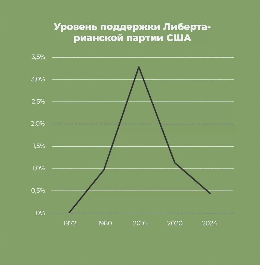 Илон Маск признался в симпатиях к либертарианству, поддержал Дональда Трампа, консервативного политика, обещающего провести либертарианские реформы; Маск возглавит ведомство эффективности правительства при новой администрации.4Trump selects Elon Musk to lead government efficiency department // The Guardian, 13.11.2024: https://www.theguardian.com/us-news/2024/nov/12/trump-appoints-elon-musk-government-efficiency-department